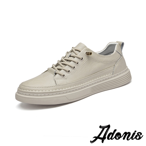 真皮潮流個性車線百搭厚底休閒鞋 板鞋 米*Adonis* |