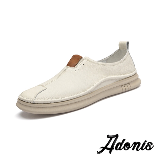 全真皮頭層牛皮時尚拼接休閒樂福鞋 米*Adonis* |