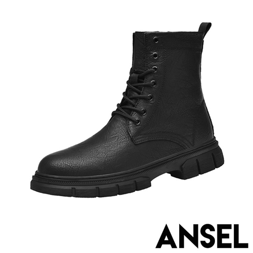 真皮潮流復古繫帶個性馬丁靴 黑*ANSEL* |