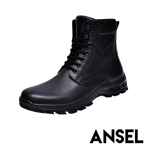 真皮個性工裝百搭厚底休閒馬丁靴 黑*ANSEL* |