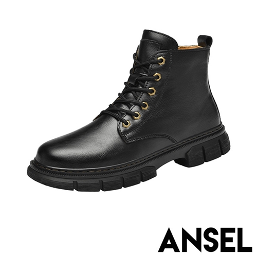 真皮時尚經典6孔繫帶百搭馬丁靴 黑*ANSEL* |