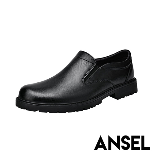 真皮純色素面百搭休閒商務樂福鞋 皮鞋 黑*ANSEL* |