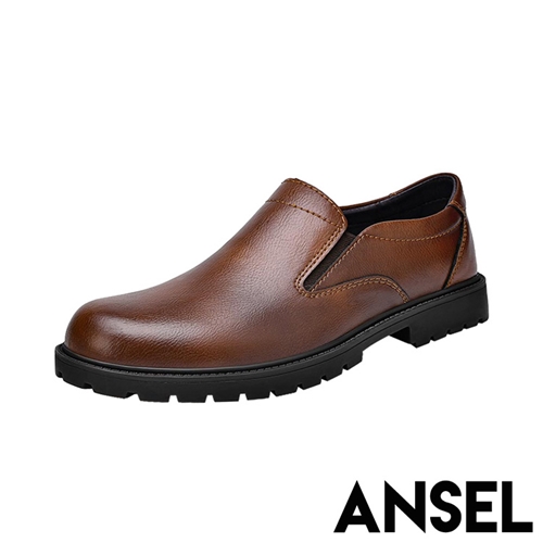 真皮純色素面百搭休閒商務樂福鞋 皮鞋 棕*ANSEL* |