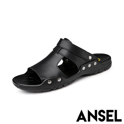 真皮兩穿法設計經典休閒百搭涼拖鞋 黑*ANSEL* |
