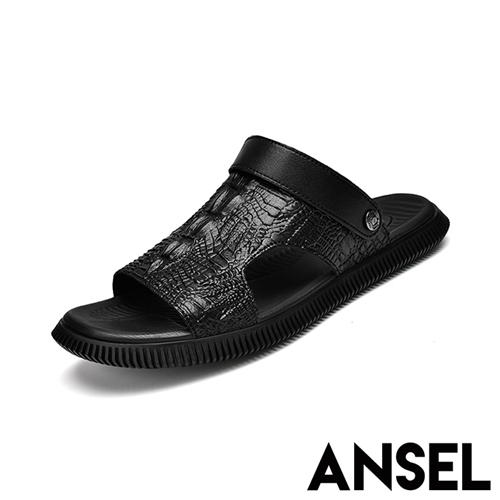 真皮兩穿法設計復古鱷魚皮紋百搭休閒涼拖鞋 黑*ANSEL* |