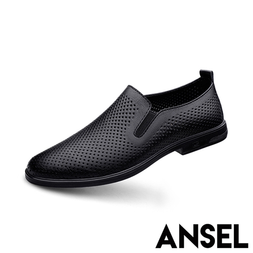 真皮純色百搭透氣沖孔經典低跟樂福鞋 皮鞋 2色任選*ANSEL* |