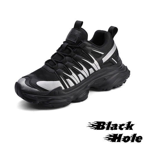 潮流黑白撞色個性網布拼接厚底運動鞋 黑*BLACKHOLE* |