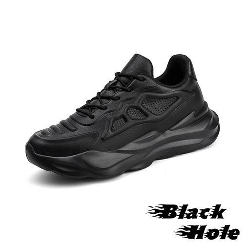個性流線皮面網布拼接潮流厚底運動鞋 黑*BLACKHOLE* |