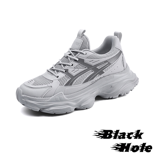 潮流流線透氣網布拼接厚底休閒運動鞋 灰*BLACKHOLE* |