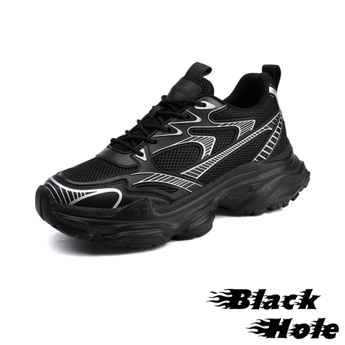 潮流撞色流線網面拼接厚底休閒運動鞋 黑*BLACKHOLE* |