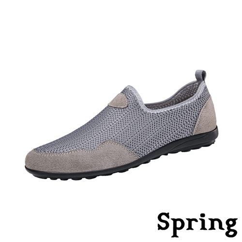 真皮透氣飛織戶外休閒樂福鞋 灰*SPRING* |