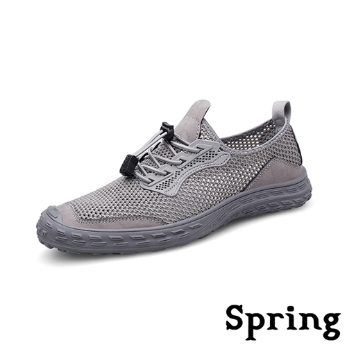 真皮透氣飛織便利束帶設計休閒鞋 灰*SPRING* |