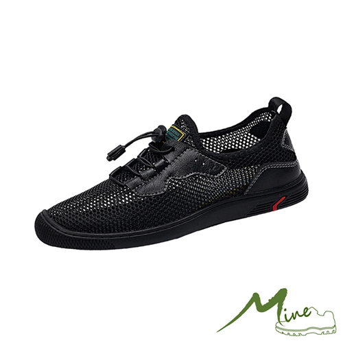 立體3D孔眼網布拼接便利束帶套腳休閒鞋 黑*MINE* |