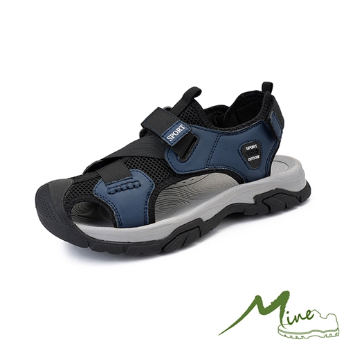 潮流護趾機能網布拼接Z字帶戶外休閒涼鞋 藍*MINE* |