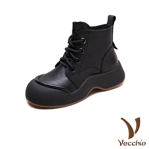 真皮頭層牛皮經典四孔繫帶厚底短靴 黑*VECCHIO* |