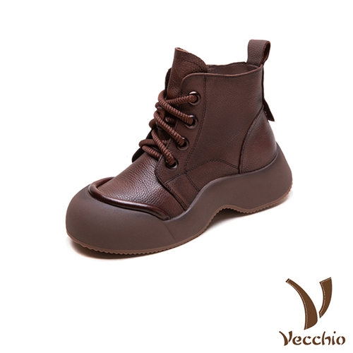 真皮頭層牛皮經典四孔繫帶厚底短靴 咖*VECCHIO* |