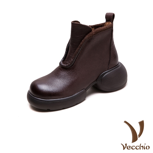 真皮頭層牛皮復古U字造型厚底短靴 棕*VECCHIO* |