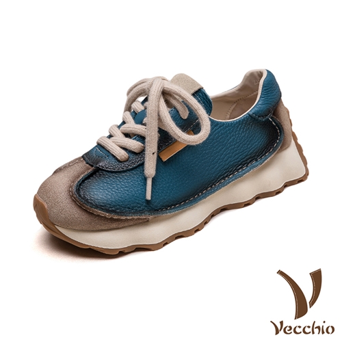 真皮頭層牛皮復古彩色皮革拼接厚底休閒鞋 藍*VECCHIO* |