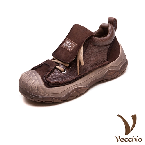 全真皮頭層牛皮復古大鞋舌綁帶餅乾厚底休閒鞋 棕*VECCHIO* |