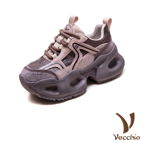 真皮織帶紋路拼接設計輕量厚底休閒老爹鞋 紫*VECCHIO* |