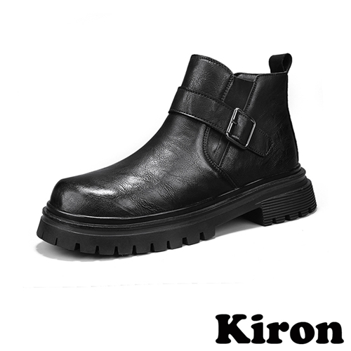 百搭經典皮帶釦飾個性切爾西短靴 黑*KIRON* |