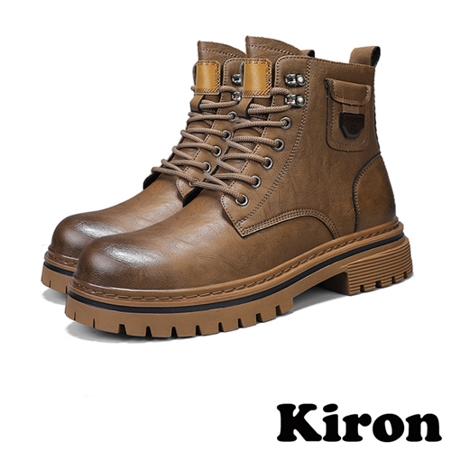 個性復古小口袋造型百搭休閒馬丁靴 卡其*KIRON* |