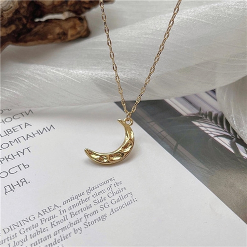 [快速出貨] 韓國設計冷淡風金色凹凸月亮造型項鍊*00:00* |