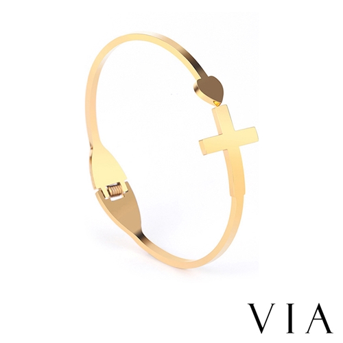 [快速出貨] 百搭十字架愛心造型316L鈦鋼手環 手鐲*VIA* |