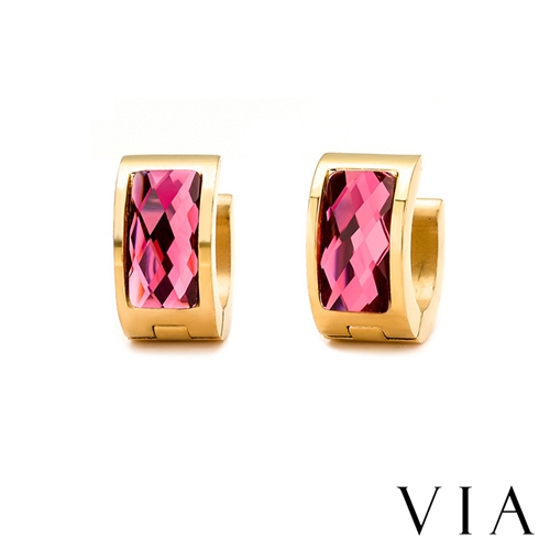 [快速出貨] 多面切割寶石鑲嵌個性316L鈦鋼耳環 耳扣 紅*VIA* |