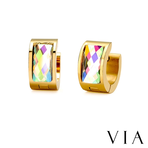 [快速出貨] 多面切割寶石鑲嵌個性316L鈦鋼耳環 耳扣 彩*VIA* |