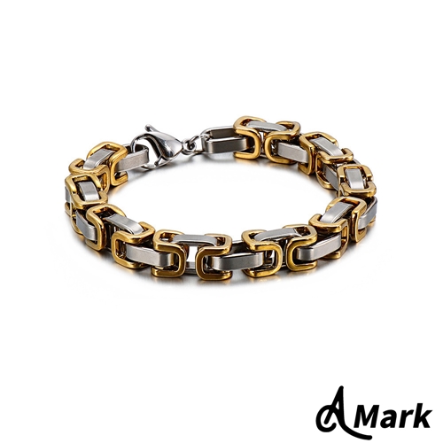 [快速出貨] 帝王回形鈦鋼手鍊 K款 間金 8MM*20.5CM*A MARK* |