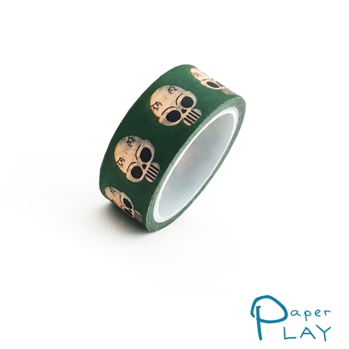[快速出貨] 和紙膠帶-綠底骷髏頭*Paper Play* |