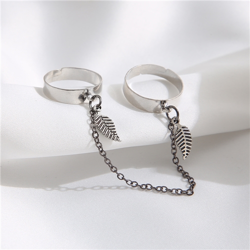 [快速出貨] 歐美潮流個性葉片連體鍊條造型戒指 2件套組*00:00* |