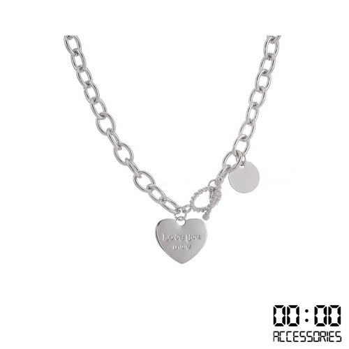 [快速出貨] 韓國設計個性OT釦愛心吊牌造型頸鍊 項鍊*00:00* |
