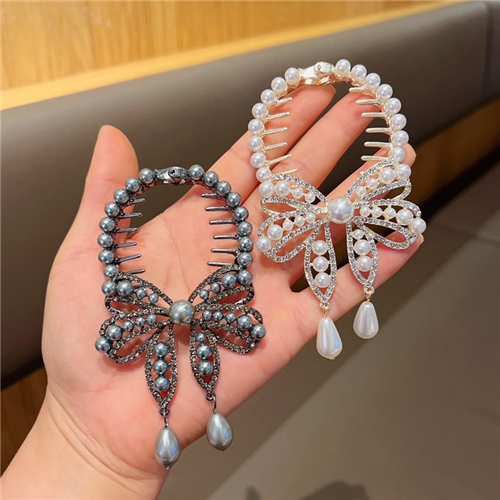 [快速出貨] 美鑽珍珠縷空蝴蝶結髮夾 2色任選*Secret Box* |