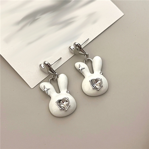 [快速出貨] 韓國設計S925銀針甜酷可愛白色小兔造型耳環*MISA* |