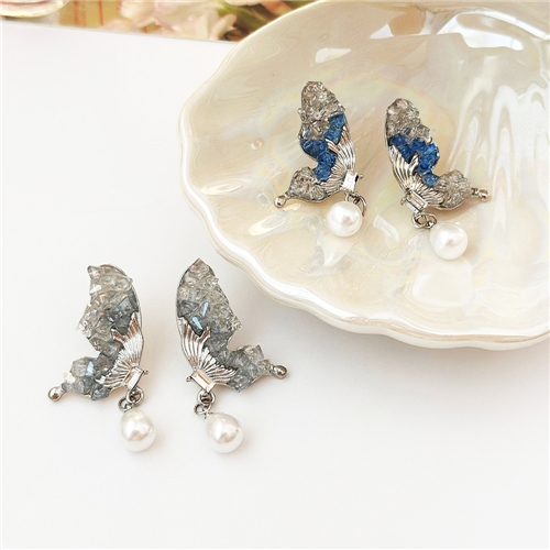 [快速出貨] 復古水晶蝴蝶水滴珍珠夾式耳環 2色任選*INES* |