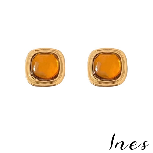 [快速出貨] S925銀針法式復古大寶石造型耳釘 2色任選*INES* |