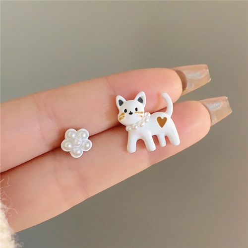 [快速出貨] 韓國設計不對稱花朵小貓咪造型夾式耳環*MISA* |