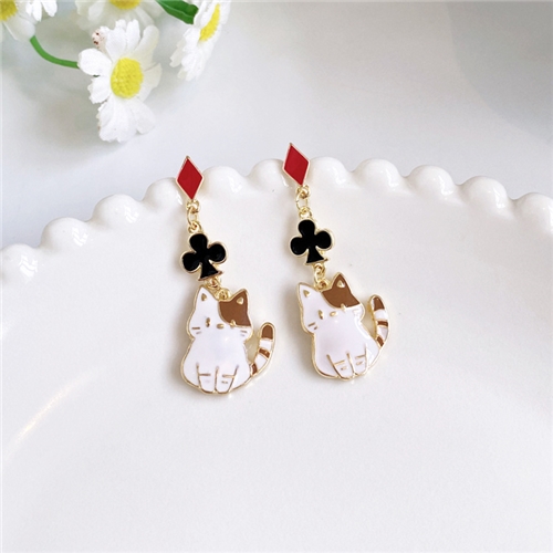 [快速出貨] 韓國設計S925銀針趣味黑桃方塊可愛小貓咪造型耳環*MISA* |