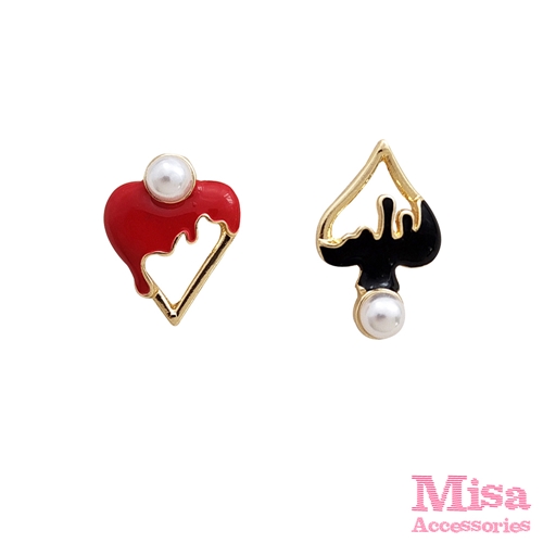 [快速出貨] 韓國設計S925銀針趣味愛心黑桃珍珠造型耳釘*MISA* |