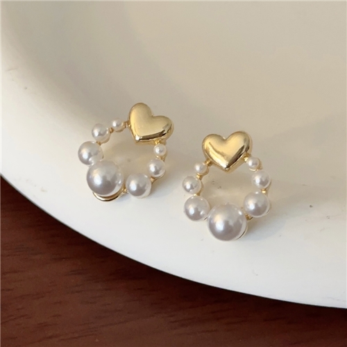 [快速出貨] 浪漫愛心珍珠圈圈造型夾式耳環*MISS KOREA* |
