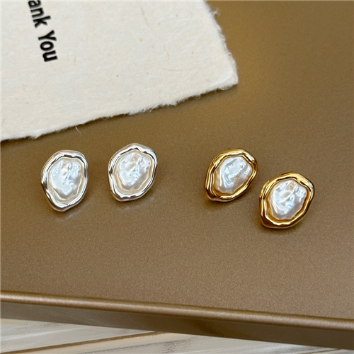 [快速出貨] 韓國設計冷淡風不規則珍珠夾式耳環 2色任選*INES* |