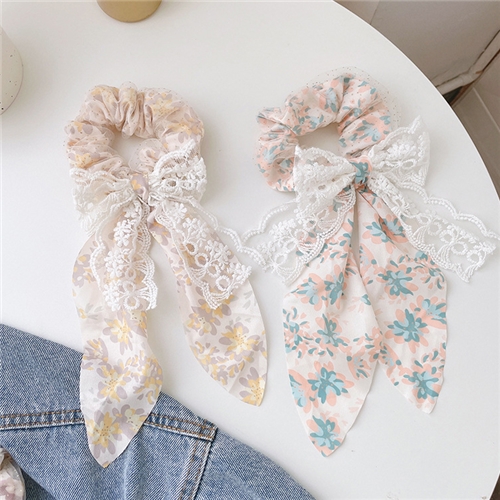 [快速出貨] 碎花蕾絲蝴蝶結綁髮大腸圈 3色任選*MISS KOREA* |
