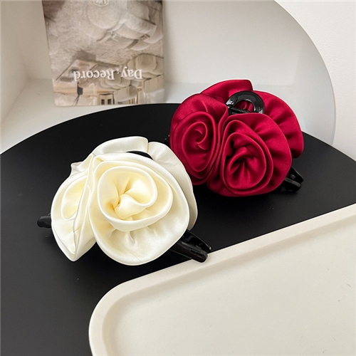 [快速出貨] 緞面立體玫瑰花朵造型抓夾 3色任選*MISS KOREA* |