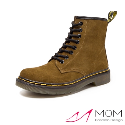 歐美經典款8孔綁帶反絨真皮馬丁靴 短靴 工程靴 卡其 |