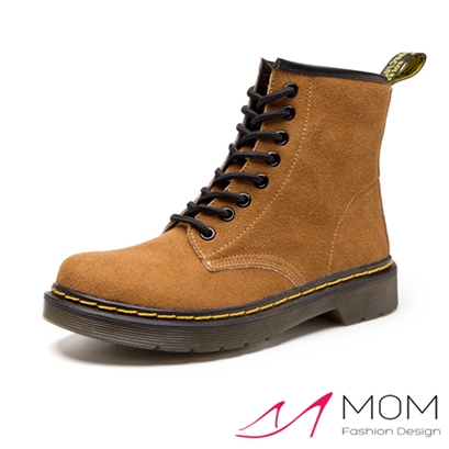 歐美經典款8孔綁帶反絨真皮馬丁靴 短靴 工程靴 黃棕 |