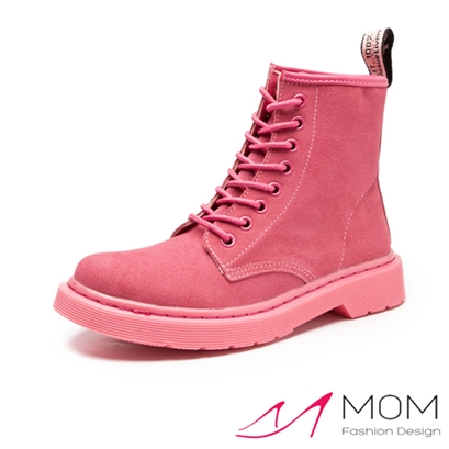 歐美經典款8孔綁帶反絨真皮馬丁靴 短靴 工程靴 粉 |