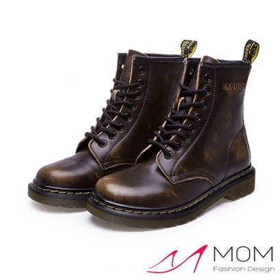 歐美經典款8孔綁帶真皮馬丁靴 短靴 工程靴 擦色棕 |