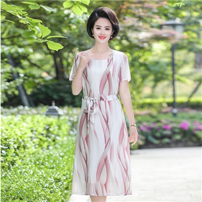 大方U領淡雅水波紋視覺修身短袖洋裝 (2色可選) |